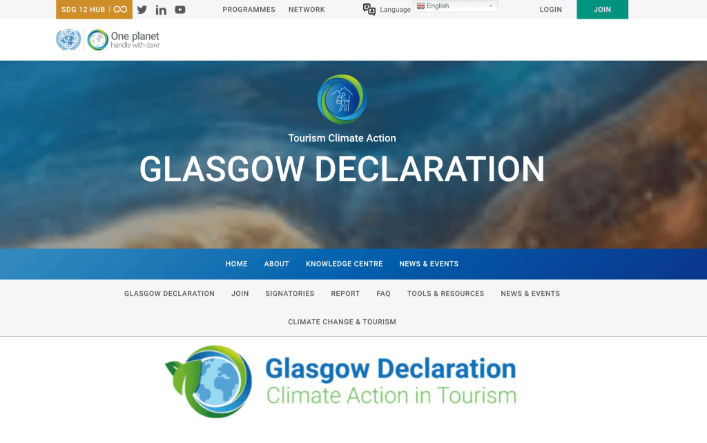 Sign the Glasgow Declaration for Climate Action in Tourism. By signing the Glasgow Declaration (like us!), your organization is committing to the creation of a climate action plan within the next 12 months.